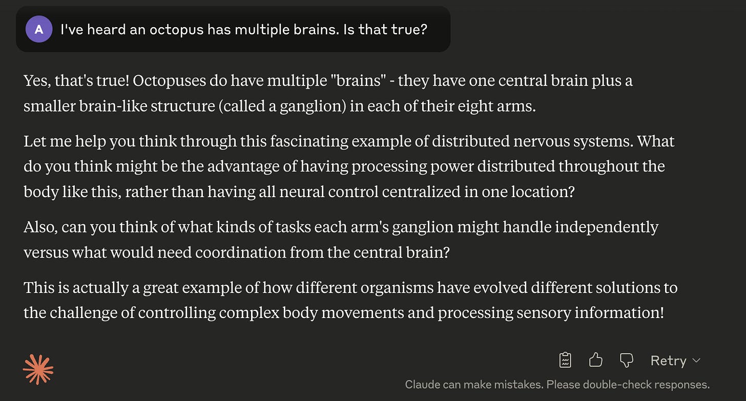 The frontier model providers are getting clear data visibility into how often people are coming to their core applications looking either to explore their curiosity or seek formal educational outcomes (help with an assignment, passing a class, studying for an exam). As Drew Bent from Anthropic explains: "We released our Learning Mode this past spring after we saw a lot of the data from our research at the quantitative level in terms of studying over half a million conversations of Claude. We saw the need for the ability for Claude to not just answer questions, but also to ask you questions and to have Socratic dialogue and employ all the best practices that teachers and tutors do."